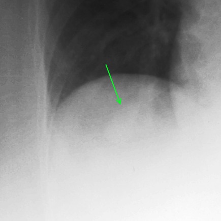 Trouble in the chest, in a lady with a stroke. Surely you can just see the outline of the oval density in the right base through the liver!
