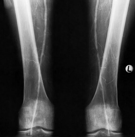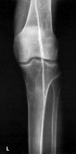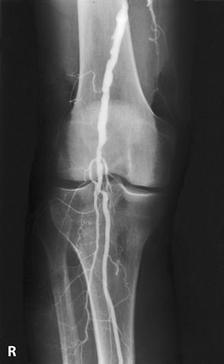 This patient developed several strictures two years apart. This one is a popliteal stricture.