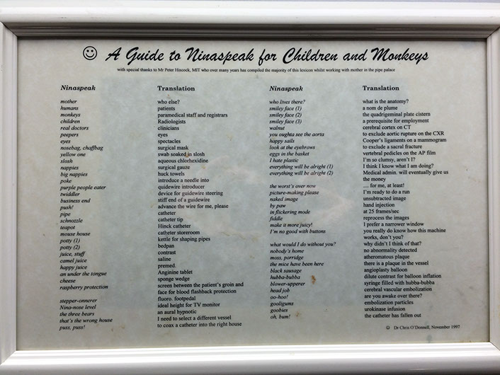 All radiographers and nurses working with Dr. Sacharias had to learn the new Ninaspeak which turned out to be very useful for quick communication