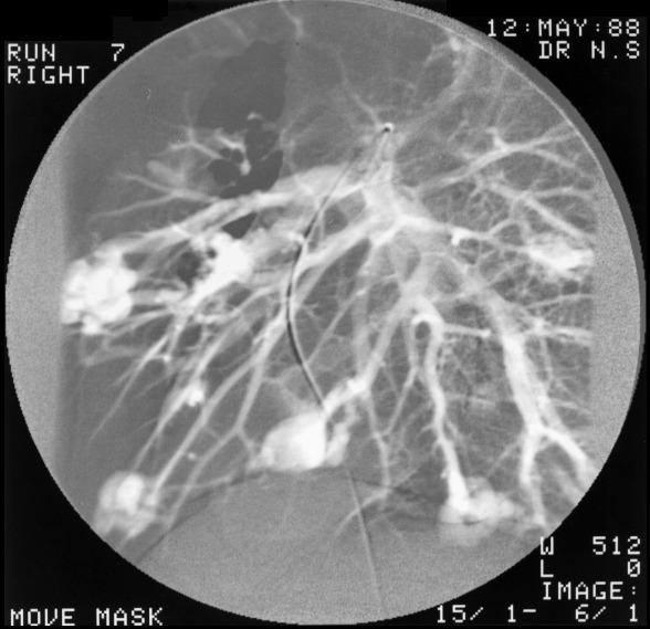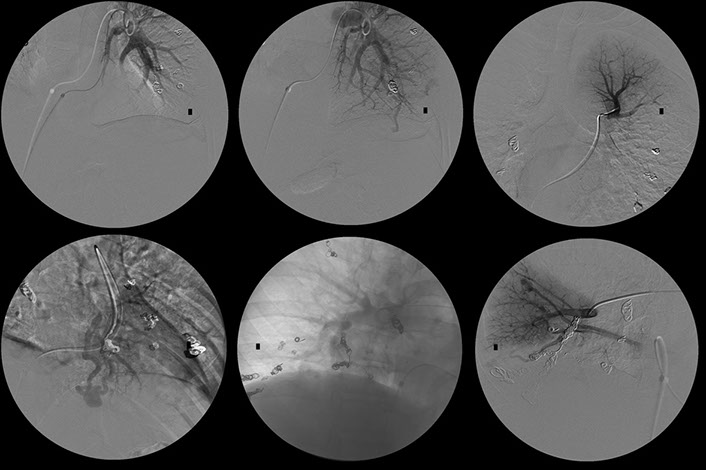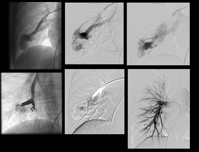But eventually the number of aneurysms which needed to be closed was very large and most of the pulmonary circulation would be occluded. For this reason, the right middle lobe was surgically removed.